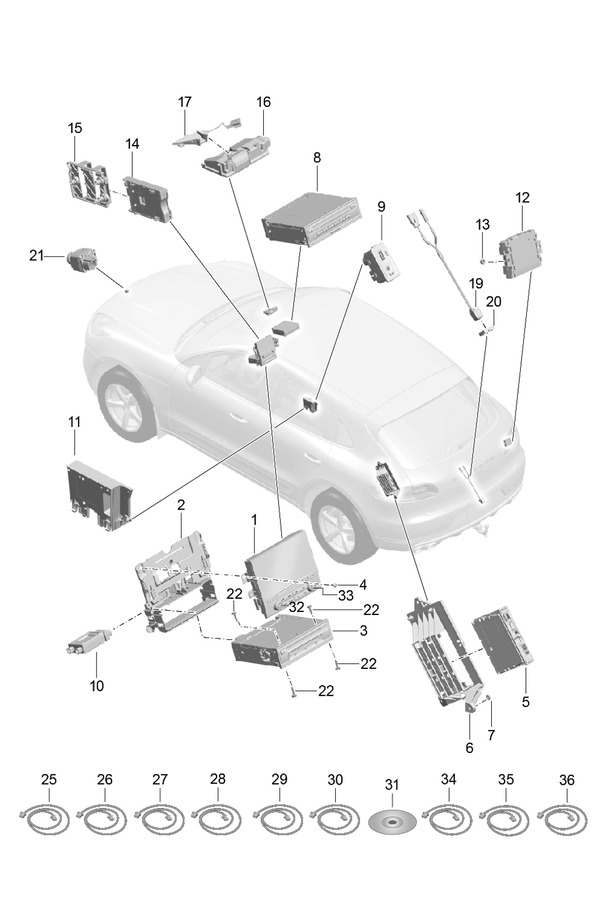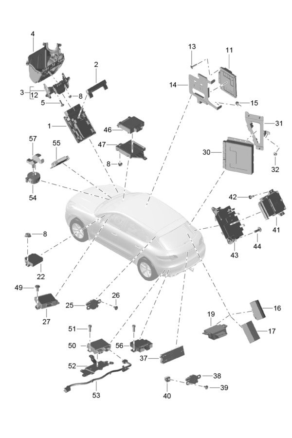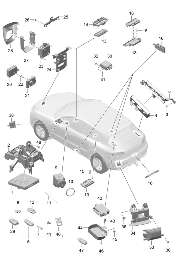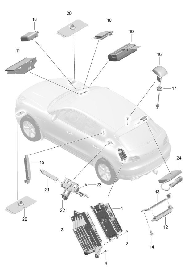 CONTROL UNITS ENGINE GEARBOX CONTROL UNIT FOR DIFFERENTIAL LOCKS OIL PUMP TOW HITCH REVERSING CAMERA PARKING AID ADAPTIVE SUSPENSION REAR LID ELECTRONIC PARKING BRAKE FUEL PUMP CONTROL UNIT FOR STOP START SYSTEM