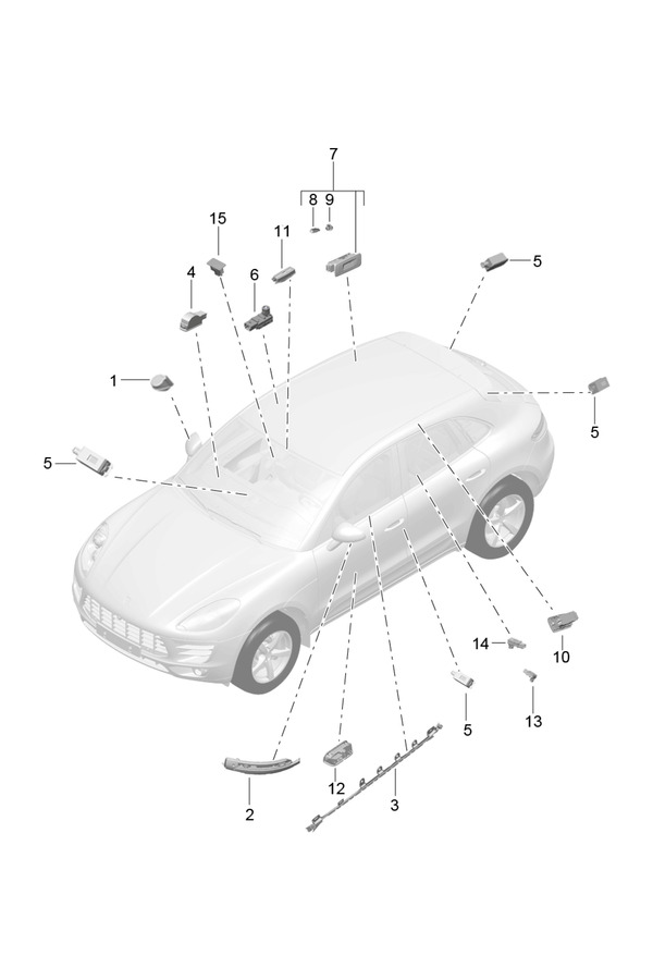 CONTROL UNITS FRONT END REAR END IGNITION/STARTER SWITCH HANDHELD TRANSMITTER FOR VEHICLES WITH RADIO CONTROLLED GARAGE DOOR OPENER FOR RADIO RECEIVER AERIAL CONTROL UNIT FOR LANE CHANGE ASSIST