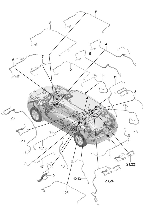 WIRE SET REAR END ROOF TRIM REAR LID ANTI LOCKING BRAKE SYST. ABS BRAKE PAD WEAR DISPLAY REAR AXLE