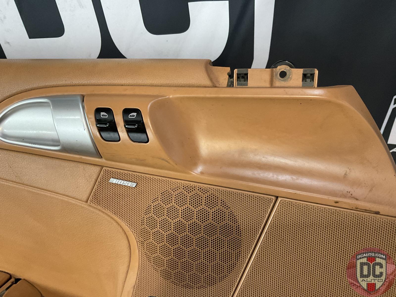 Good used. Driver door panel in sand beige vinyl, with bose, with comfort/power seat option. 134168