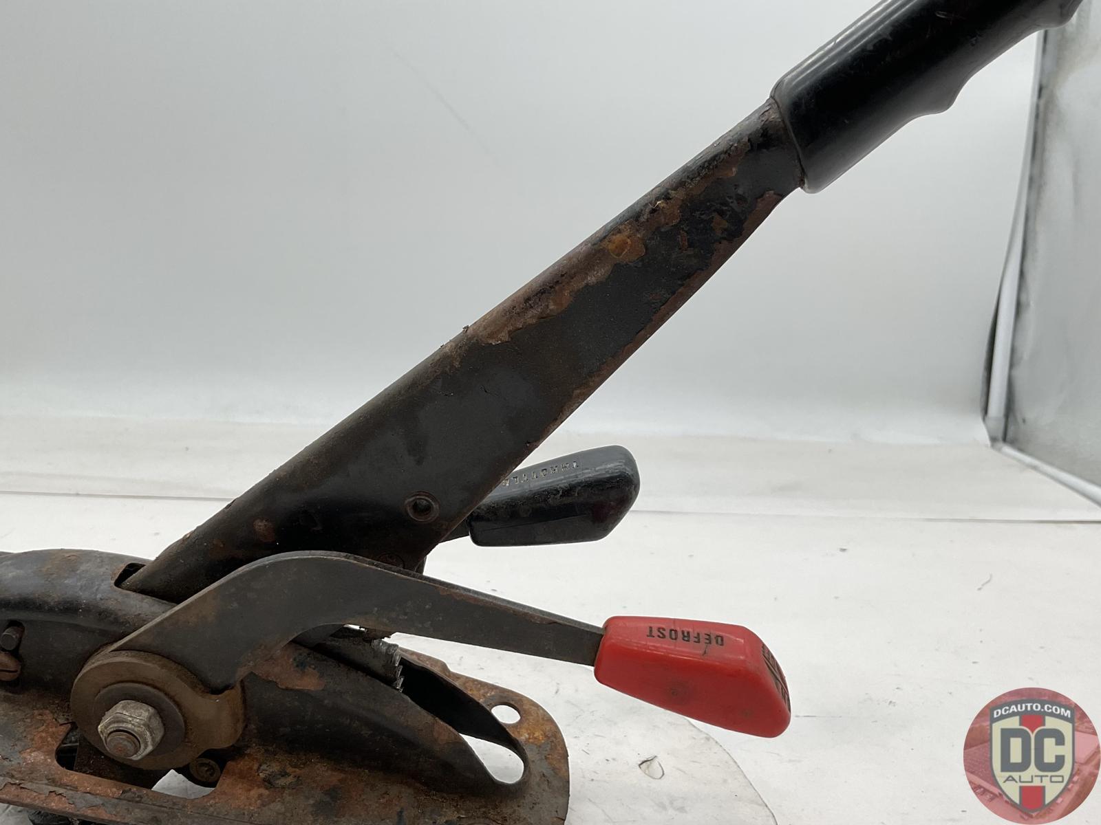 With manual throttle lever. Good used, see photos for condition.